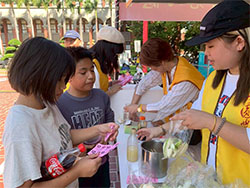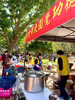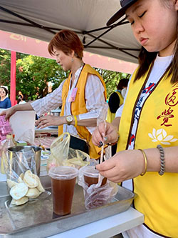 新竹市大圓覺功德會十多年如一日支持園遊會,師兄師姊們用心製作的素食美食,陪伴無數家庭,也用服務與熱情傳遞最真誠的溫暖