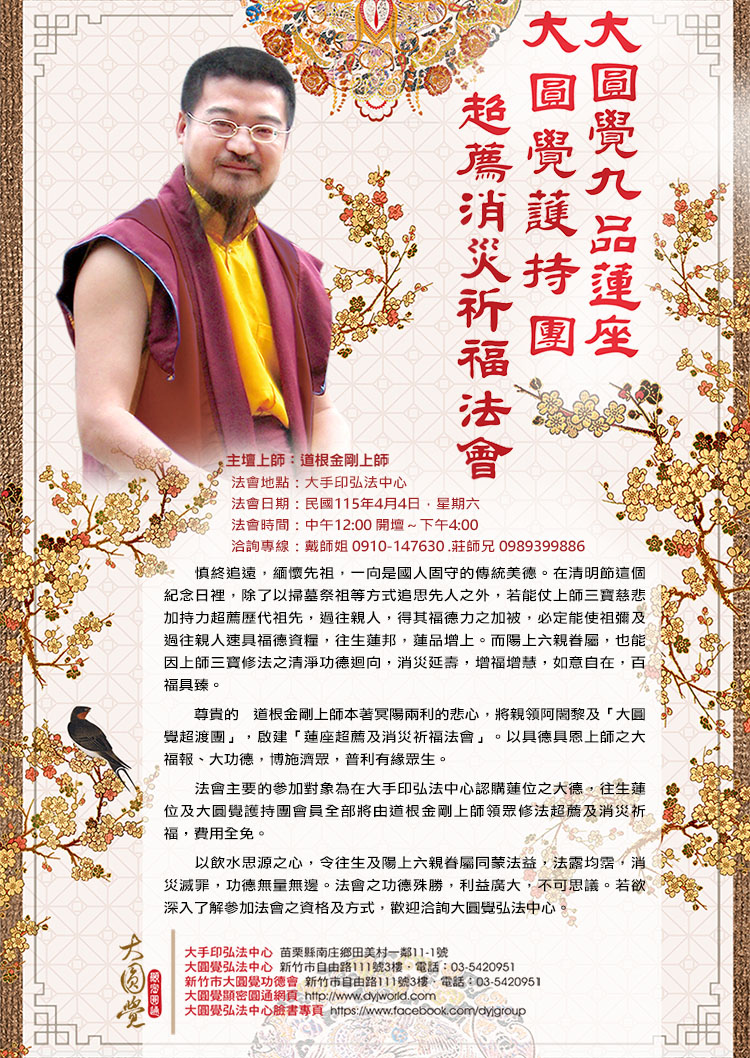 2026.4.4 大手印弘法中心【大圓覺九品蓮座.大圓覺護持團超薦消災祈福法會】
