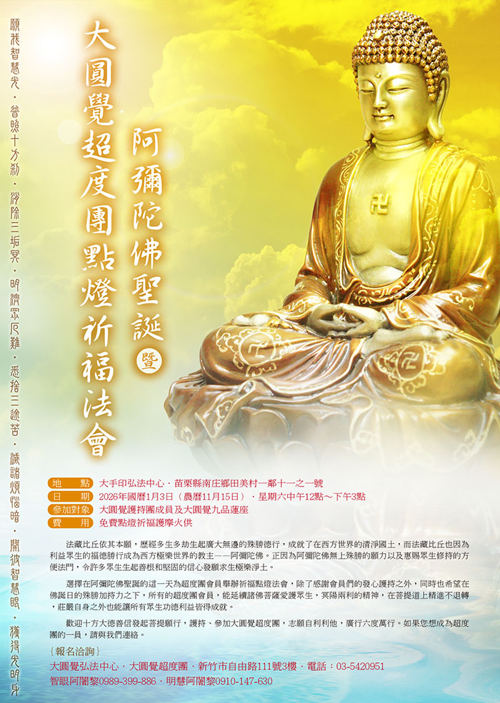 2026.1.3 大圓覺弘法中心【阿彌陀佛聖誕】暨【大圓覺超度團點燈祈福法會】