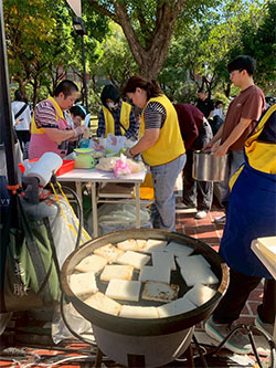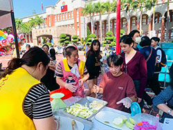 新竹市大圓覺功德會十多年如一日支持園遊會,師兄師姊們用心製作的素食美食,陪伴無數家庭,也用服務與熱情傳遞最真誠的溫暖